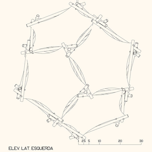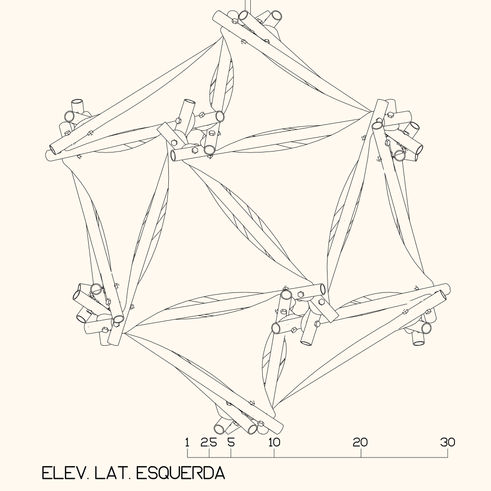 Após a conclusão do domo geodésico e, consequentemente, do curso de Arquitetura, eu ainda estava buscando novas aplicações do tema de estudos que tanto me interessava: os sistemas de vigas recíprocas. Com isso, decidi colocar a teoria em prática mais uma vez, no entanto com objetos menores e mais perenes, feitos de materiais mais duráveis, e que pudessem ser presentes no dia a dia de uma residência. A solução veio na forma de uma série de luminárias, cuja forma remetesse aos cinco* poliedros platônicos.